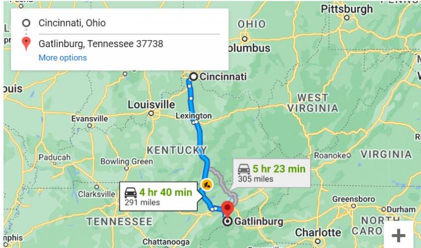It's best to leave Cincannati prior to 9 a.m. to ensure you arrive with plenty of time to settle into your Gatlinburg vacation rental.