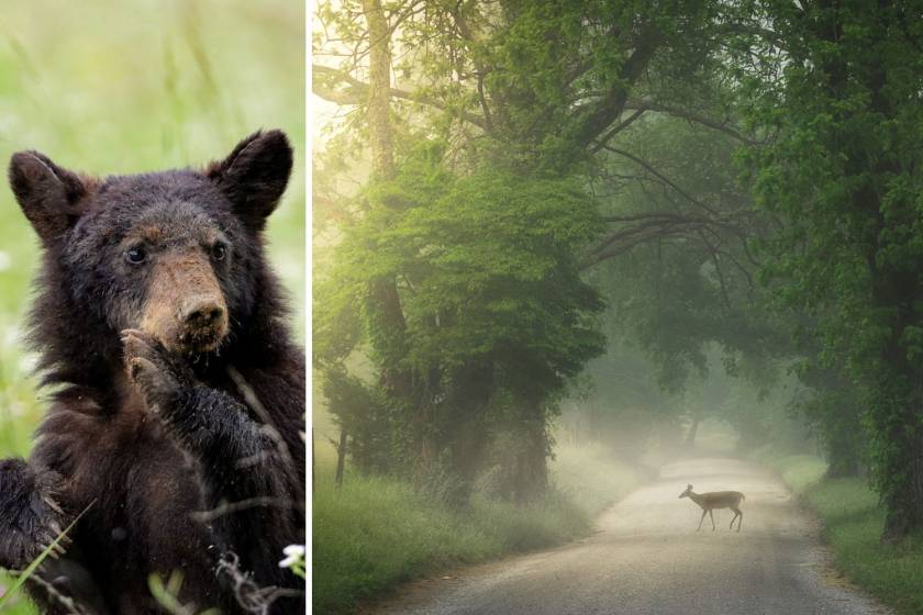 Cades Cove is about an hour and 20 minutes from Gatlinburg, TN. It’s the most visited site in the national park and is known for excellent wildlife viewing opportunities, hiking trails, and scenic sightseeing.